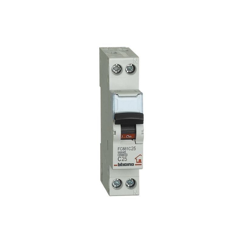 Iinterruttore magnetotermico 1P+N curva C – In= 25A – Icn= 4,5kA – Vn= 230 Vac – 1 modulo