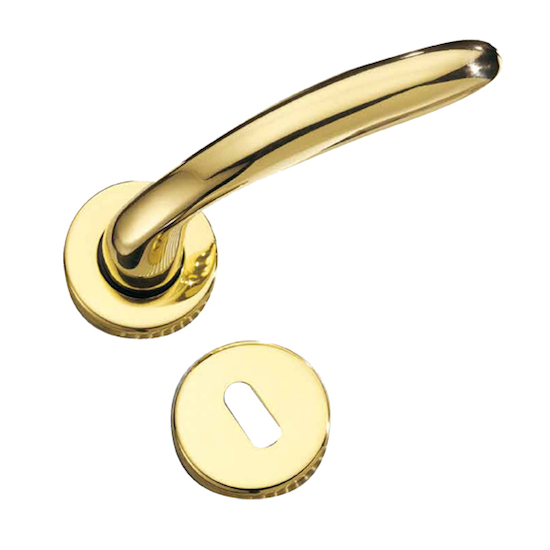 Maniglia REA bocchetta tonda foro patent finitura cromo satinato/oro lucido