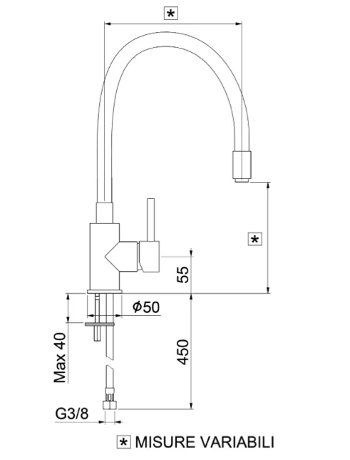 Miscelatore cucina canna flessibile e girevole colore bianco completo di flessibili.