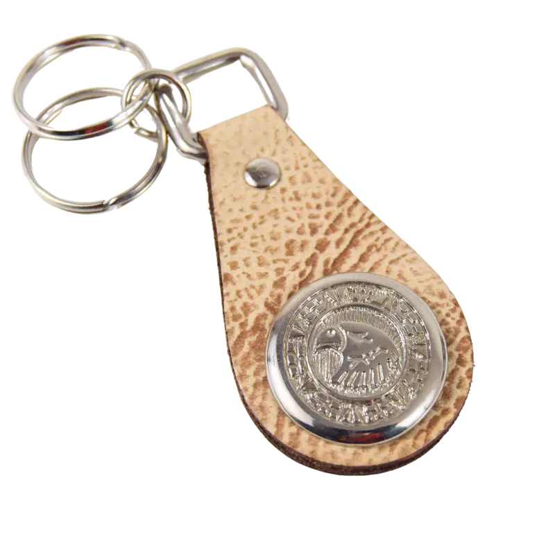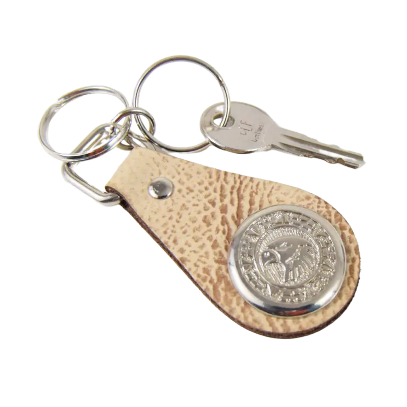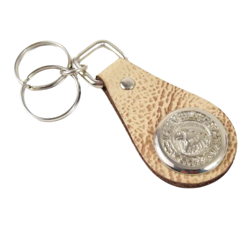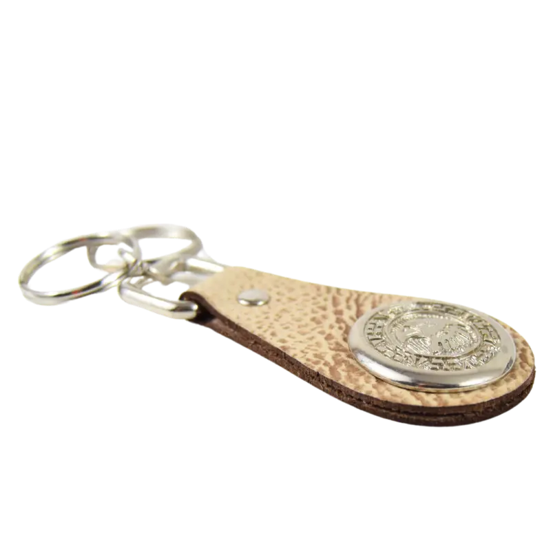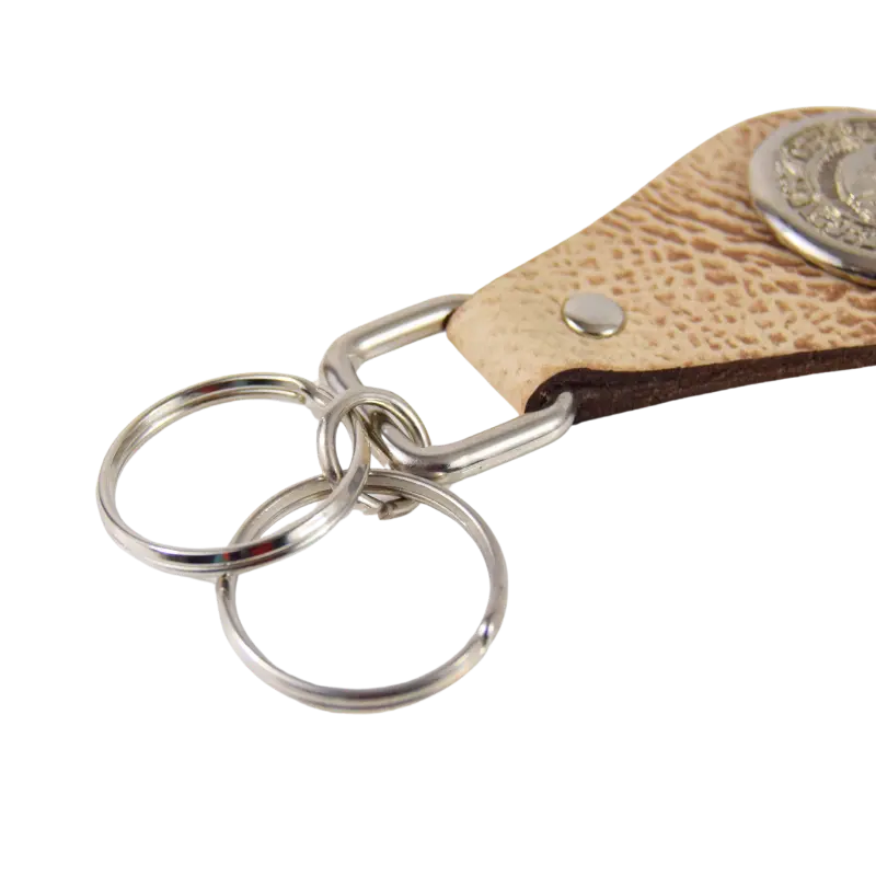 Portachiavi realizzato con diverse tipologie di cuoio, dal classico marrone a quello effetto sabbiato sui toni chiari.