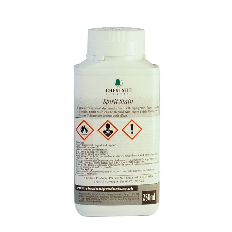 Confezione di mordente a base d’alcol in vari colori “arcobaleno”. Possono essere usati puri oppure miscelati tra loro per comporre un nuovo colore o produrre un effetto sfumato. Si possono anche usare per tingere facilmente il turapori alla cellulosa o la vernice melaminica Chestnut.